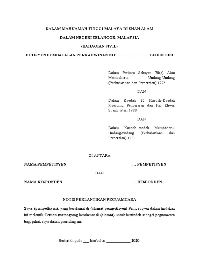 Adalah diarahkan selanjutnya bahawa secepat mungkin arahan ini difailkan dalam pejabat setiausaha negara dan bahawa publisiti dan notis meluas akan diberikan untuk arahan ini. A Petisyen Perceraian b Afidavit menyokong petisyen c Notis Perlantikkan Peguamcara d Akuan Terima Penyampaian e Notis Prosiding f Pernyata anak-anak jika ada g Perintah Penyampaian GantiPengecualian serahan jika ada h Afidavit Penyampaian i Notis Bicara j Arahan Perbicaraan If papers not in order new hearing date will. 1 notis pelantikan peguam law enclosure dalam mahkamah tinggi malaya di shah studocu.